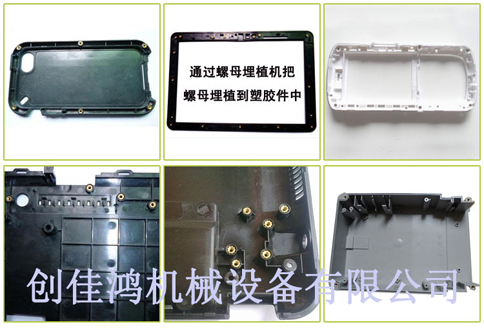 廣泛應(yīng)用于:手機(jī)、手提電腦、多種塑膠外殼、通信、微電機(jī)、電腦、電器、電子、玩具、鐘表、燈飾、汽車(chē)等行業(yè)手機(jī)外殼螺母熱熔、埋植、植入。
